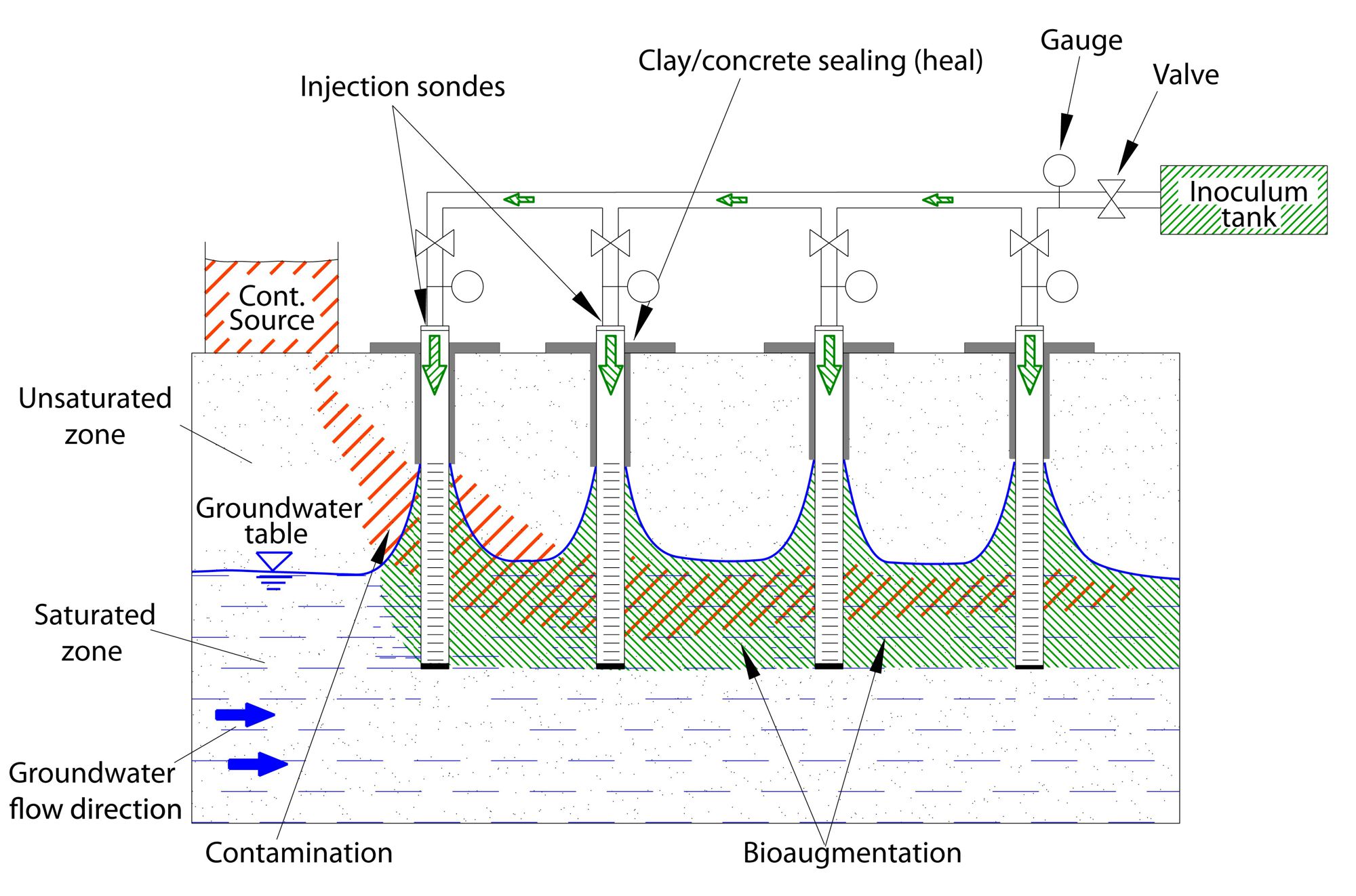 Our flag-ship bioaugmentation/biostimulation technology utilizes the activity of single cell yeast – Yarrowia lipolytica. It was developed for application at sites polluted with oil based contaminants. Aside from citric acid, the especially cultured yeast strain produces also lipases and other substances enhancing the dispersion of nonpolar pollutants to increase their bioavailability. The biodegradation is aerobic with the use of blowers (vadose zone) or air-sparging (saturated zone).